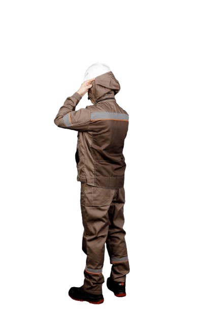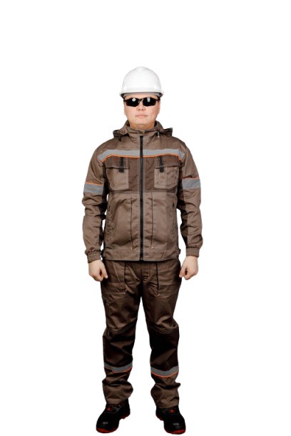 Куртка с центральной бортовой застёжкой на тесьму-молнию, с удлинённой спинкой, воротником стойкой и капюшоном, пристёгивающимся на молнию. Верхними накладными и нижними прорезныи карманами на молнии. Ширина куртки по низу регулируется хлястиком с липучкой.